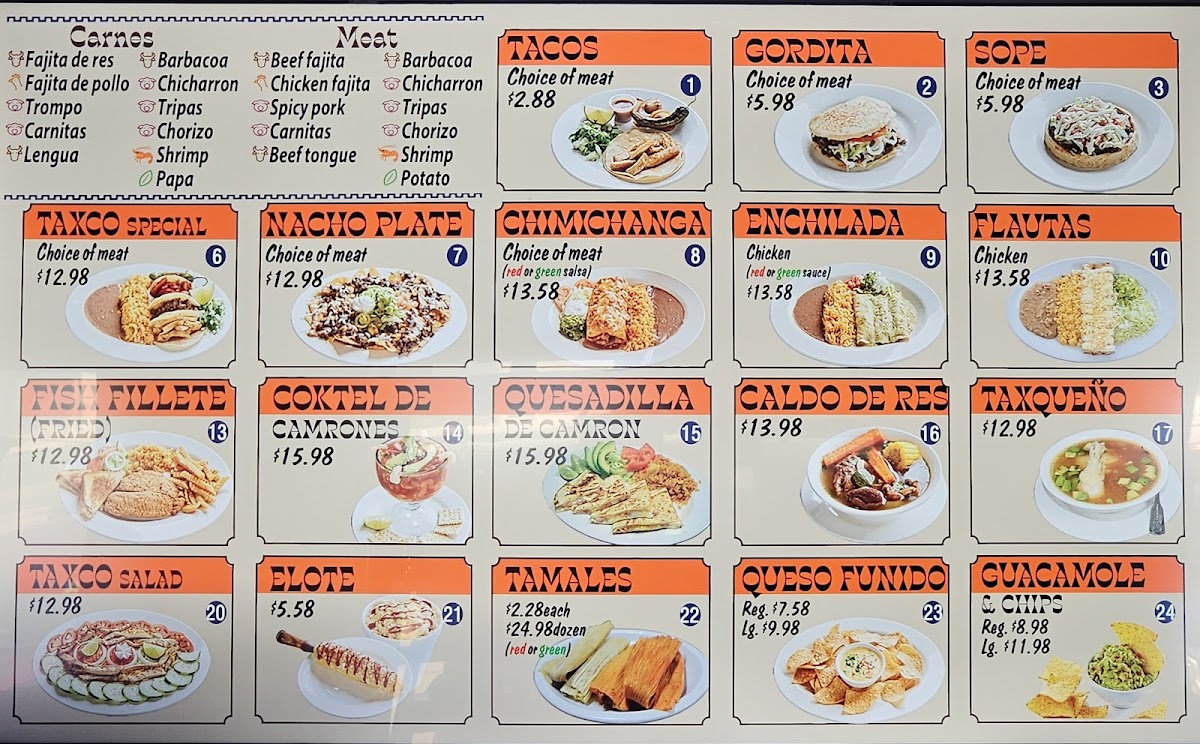 Welcome to Taqueria Taxco, a vibrant Mexican restaurant nestled in the heart of Dallas. With its open 24-hour service, this place caters to your cravings around the clock. The menu showcases an enticing array of options, from mouthwatering burgers like the Taxco Cheeseburger to delicious platillos such as Chimichangas and Enchiladas, each priced reasonably around $13.88. Don’t miss the tantalizing tacos—highly recommended by customers, especially the Pastor Tacos and Chicharrón Taco, which have garnered rave reviews.